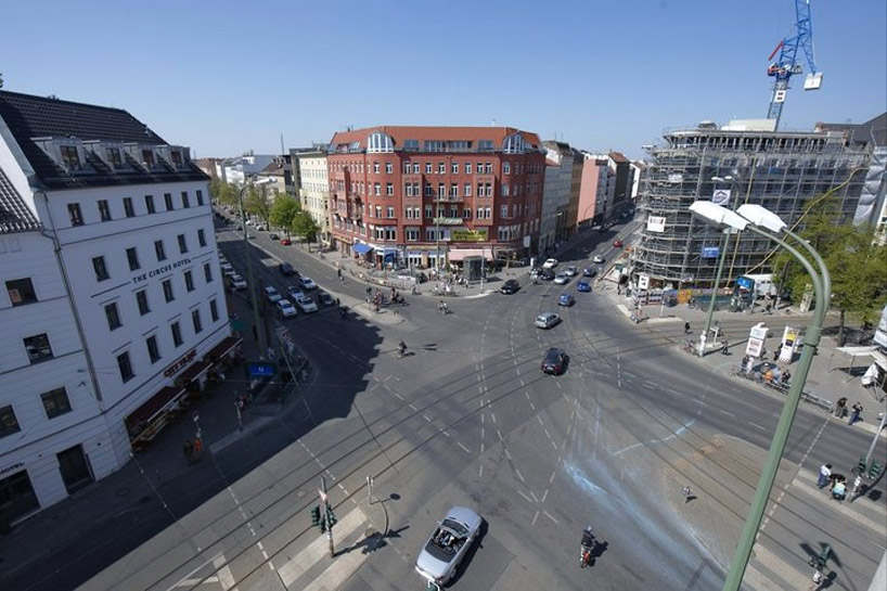 near berlin's rosenthaler platz into a colourful, oversized street canvas. 'painting reality' is