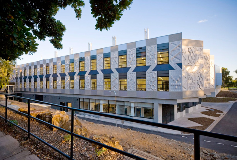 australian architecture firm, lyons has completed 'john curtain school of medical research', a research laboratory designed to enhance interactivity and collaborative research. located in the capital city of australia, the low-rise structure is based at the australian national university in canberra. housing research facilities, exhibition areas and a 200 seat public lecture theater, the building features a series of internal spaces that are connected with stairs and open atria aimed at promoting social exchange and fraternization.