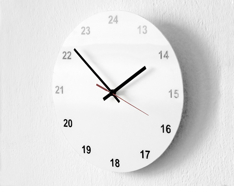 project 'am/pm', a wall clock that shows both the antemeridian and postmeridian version of the daily hours,