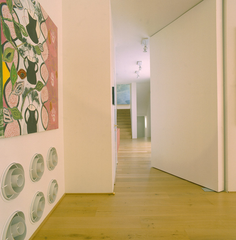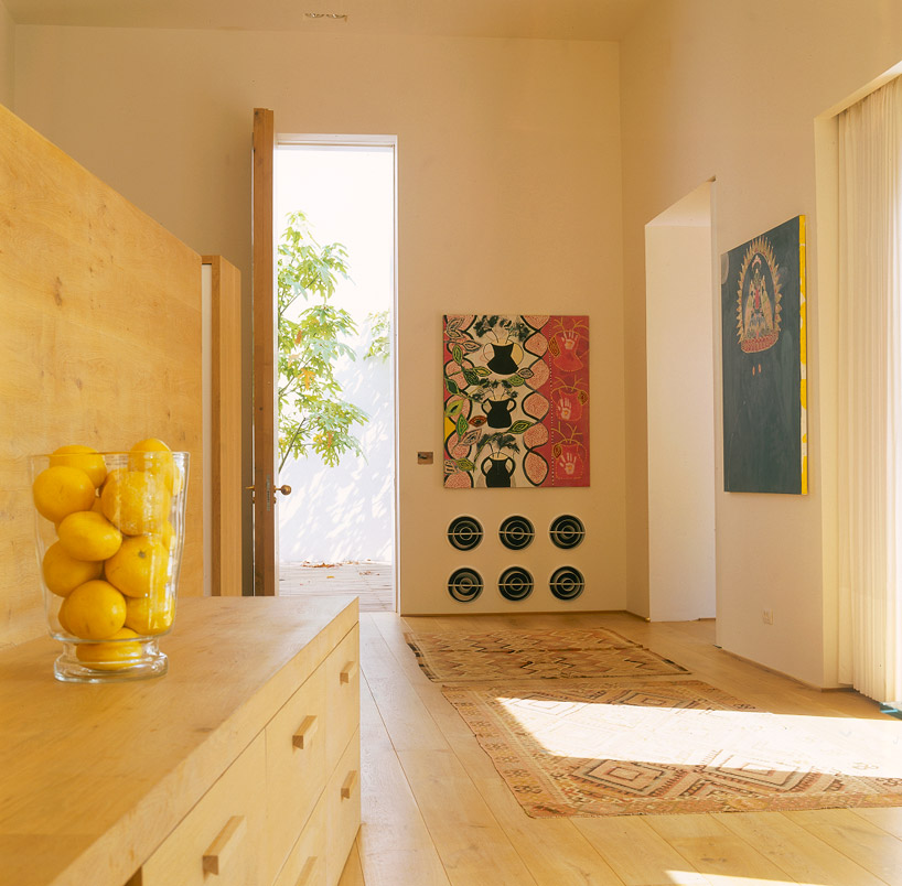 of the house allowing the inhabitant's extensive wood art collection to give a consistent warm character. large operable windows
