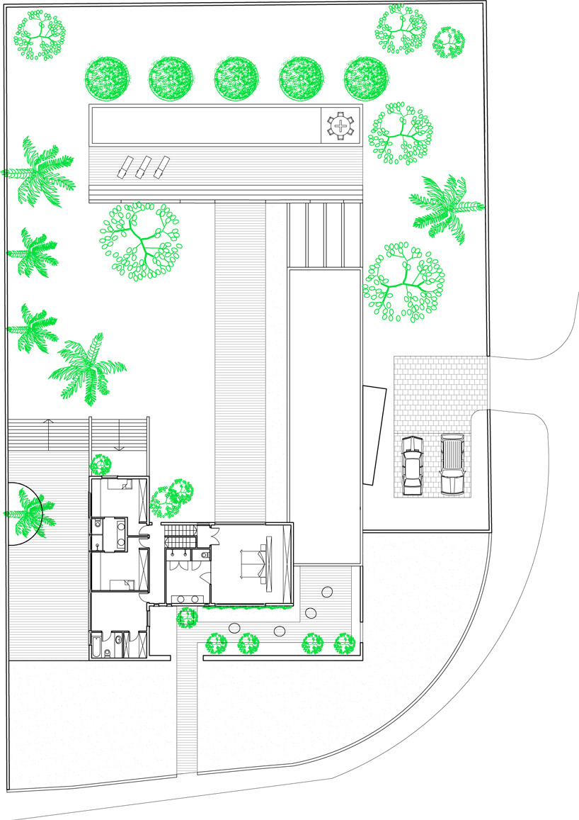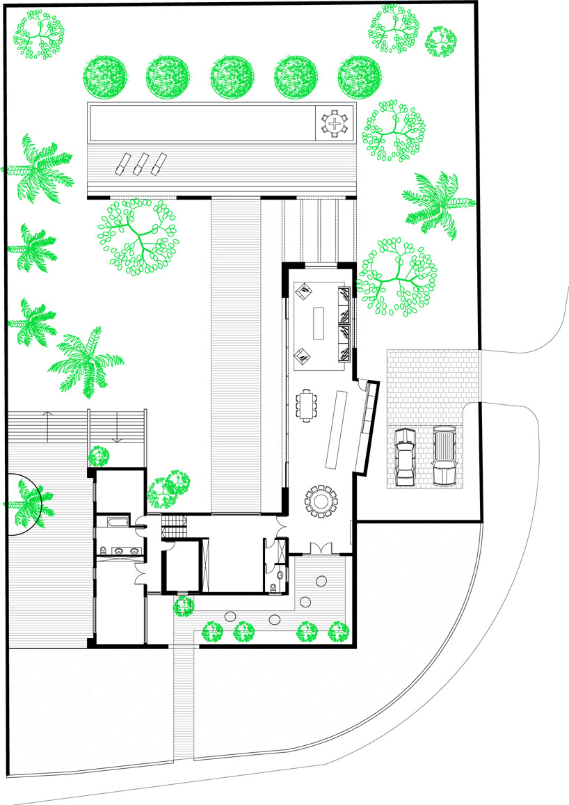 shade for comfortable use during harsh summer weather. the ground floor accommodates a continuous living room, open plan
