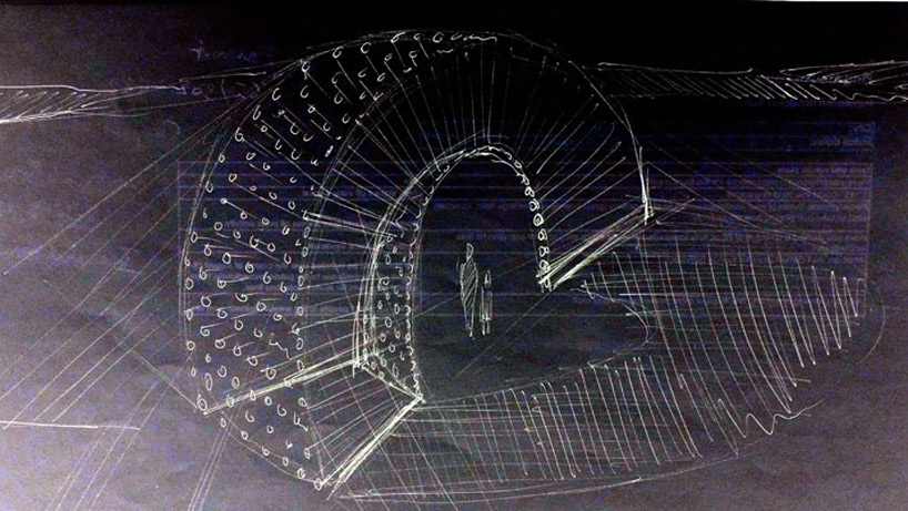 while in iran, the artist also studied traditional mosque architecture, fascinated by the geometric shapes, domes and use of light, and acoustic properties typical to these spiritual structures. from this exploration, jerram hoped to develop a work embodying the sounds of sacred architecture. jerram's experience speaking with the desert well digger and observation of iranian architecture helped to form the piece as he developed a sculptural investigation of wind, architecture, acoustics and light.