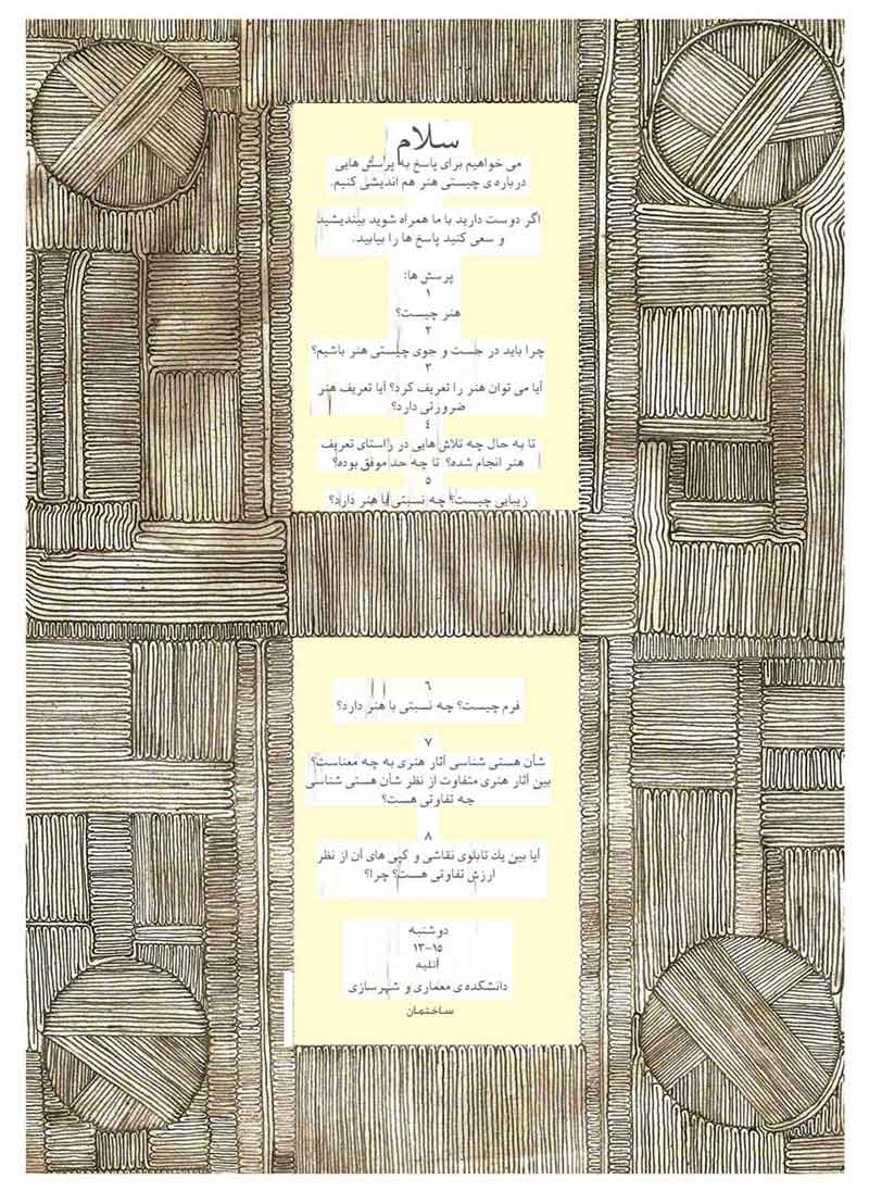 مکان : دفتر هنر و ادبیات دانشجویی ؛ پردیس کرج دانشگاه هنر؛