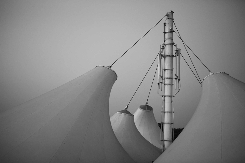 the IGI toll plaza, is a smaller structure located at the entry point to dwarka and the IGI international aiport. it was developed to be a highly visible space as it acts as a gateway to the city for people flying into delhi, nationally or internationally. it comprises of hi-tech frameless glass booths with a tensile canopy that punctuates the public square. today it has been declared the largest in asia with a twisted covering that sites on seven 7.2m high concrete pins. the bottom of the tent is lit with changing LED colors that allow the daily commuter to experience a variety of visual montages.
