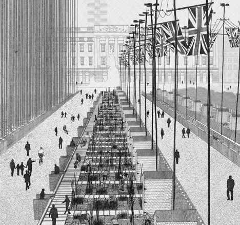ند اسکات در اتودهای ترسیمی که برای پارک سینت جیمز لندن زده صورتی فوتوریستی ارائه داده که به راهکارهای شایع سالهای اخیر تحت عناوین راهکارهای سبز یا پایدار به شدت نظر دارند. با توجه به چیزهایی که در مورد سانت الیا و اتودهاش بر ما گذشته؛
