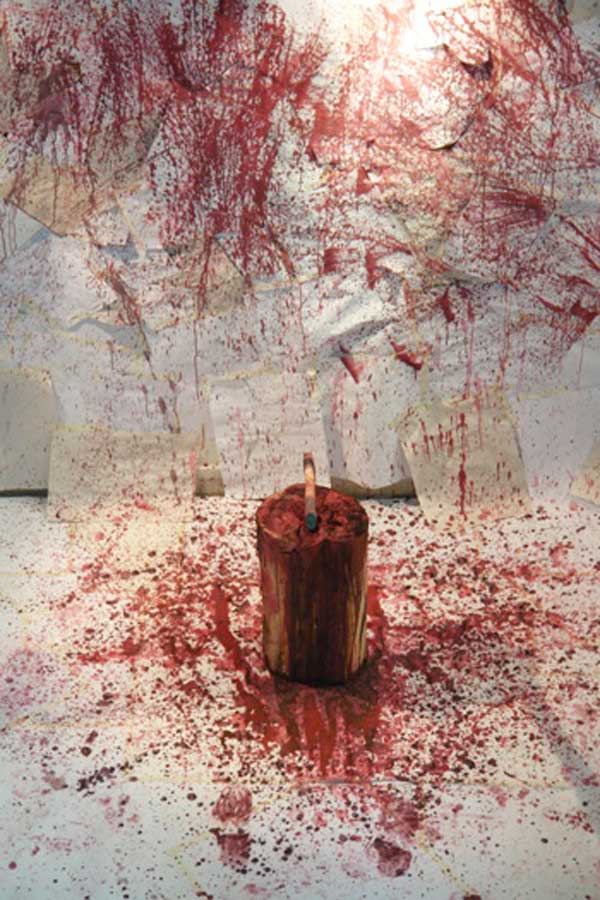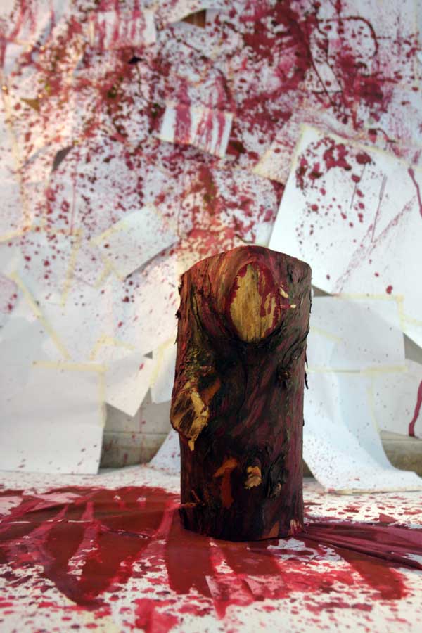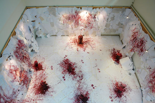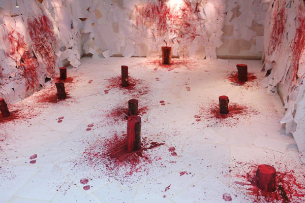 فستیول خون یک کار اینستالیشن دانشجوییست که در لابی دانشکده معماری دانشگاه هنر توسط تیمی از دانشجویان معماری ورودی 90 دانشگاه و به صورت کاملا خودجوش با رویکردی انتقادی به رویه تخریب محیط زیست و با متریالهایی بازیافتی ساخته شده است. طراح با نگاه به جنایتی (تعبیر از خود طراح) که هر روز هزاران بار بر روی کره زمین اتفاق میافتد و بیانی صریح از این جنایت در قالب بازنمود درختانی سربریده و خونآلود در بستر فرششدهای از کاغذ، ضمن القای پیام طبیعت دوستانهی خود با ترکیببندی صحنهای با کنتراست بالا، مخاطب را ناچار به مکثی هرچند اندک مینماید و به این ترتیب فیستیوال خون برگزار میشود.
