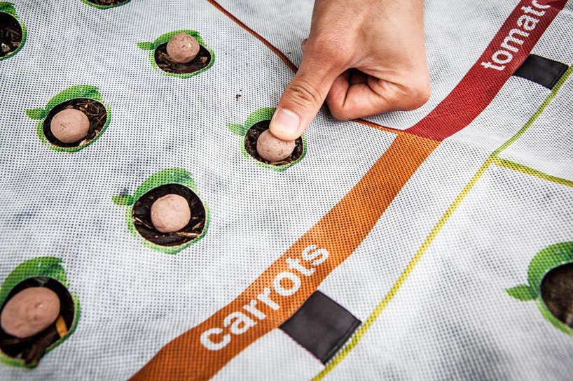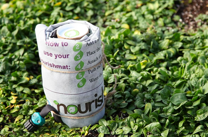 نوریشمات بیشک یکی از بهترین جوابهایی ست که به این سودای بسیار بسیار محترم داده شده است. نوریشمات شبکهای الیافی با یک طراحی بینظیر است که بر روی خود به صورت گرافیکی نیازهای عمومی محصولات کشاورزی یک خانواده معمولی را دستهبندی کرده است و متناسب با نیاز هر محصول، حفرههایی برای کاشت بذر آن محصول دارد. گرافیک عمومی سطح الیافی نوریشمات آدم را یاد بازیهای کاغذی و فکری میاندازد، انگار شما باغبانی را به مثابه بازی و سرگرمی ارزشمندی در زندگی خودتان وارد میکنید. نوریشمات را رول میکنید و در هر کجا که مورد نظرتان است پهن میکنید. لایههای فشرده خاک غنی شده و مواد معدنی پس از بازشدن رول سطح حدودا ۱ در ۲ متر به صورت یک زمین بازی بزرگ در اختیارتان میگذارند که به خوبی روشن کرده است نیازهای کشاورزی خانوادگی چگونه است و تنها از شما میخواهد خانههای بذرهای درنظرگرفته شده را پر کنید. در میانهی هر کرت محصولات غذایی مسیرهایی ترسیمی درنظرگرفته شده است که مانند جویبارهای کناره زمینهای کشاورزی هستند و با اتصال ورودی آب نوریشمات به آب شهری، آبیاری جامع کل صفحه را انجام میدهند و در عین حال مینیاتوری از یک باغچه واقعی کشاورزی را ترسیم میکنند. دستورالعملهای نحوهی رسیدگی به برخی محصولات و آبیاری و ... نیز در بخش پایین نوریشمات گنجانده شده است.