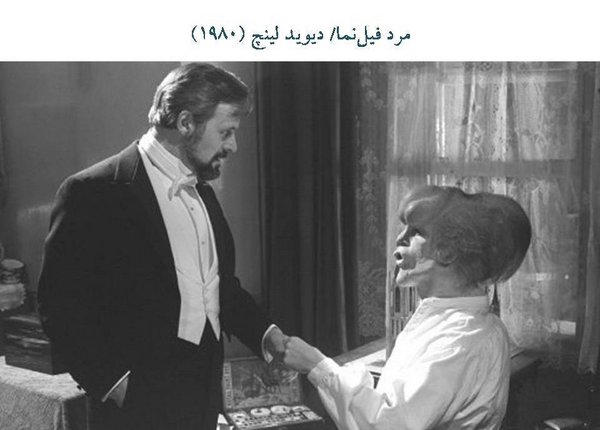 "مرد فیلنما" در واقع همینطور و دیگر توضیح نمیدهم. مردی است که میگویند یک فیل به یک زن تجاوز کردهاست و چنین موجودی را ایجاد کردهاست. قصه را به قرن نوزدهم بردهاست. یک هنرپیشه به این فرد علاقهمند میشود و میآید و به او توجه میکند و آخرش او درحال درست کردن یک کاردستی است. از او میپرسد که داری چه چیزی درست میکنی؟ میگوید دارم کلیسا درست میکنم.
