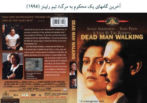 فیلم آخرین "گامهای یک محکوم به مرگ" که به نام "راه رفتن مرد مرده" معروف شده است، در آن شون پن را میبینید که در زندان است و گریمش شبیه به حضرت عیسی (ع) است، چهرهای که ما در ذهنهایمان از حضرت عیسی (ع) داریم، در فیلم تصویر میشود. یک راهبهای میآید و به او کمک میکند، به او انجیل میدهد تا بخواند. این فرد هم میگوید من بیگناهم و من هیچ کاری نکردهام و .... او را جرم قتل و مثله کردن دو نفر گرفتهاند. وقتی که دارند او را اعدام میکنند، او را به صورت صلیبی به تختی میبندند و سرنگی را که حاوی مواد کشنده است به دستش تزریق میکنند. این فیلم هم باز صدای کلیسا را درآورد که گفتند خیلی مسخره است. او یک مجرم است که او را شبیه حضرت عیسی (ع) میکشید و .... جالب این است که این فرد از اول تا آخر فیلم انکار میکند و میگوید که من بیگناهم ولی در لحظات آخر، زمانی که دارد سم روی بدنش اثر میکند، ما به خاطرات ذهنی او میرویم و متوجه میشویم که او این قتل را مرتکب شدهاست و خیلی هم فجیع، آن دو نفر را کشتهاست.