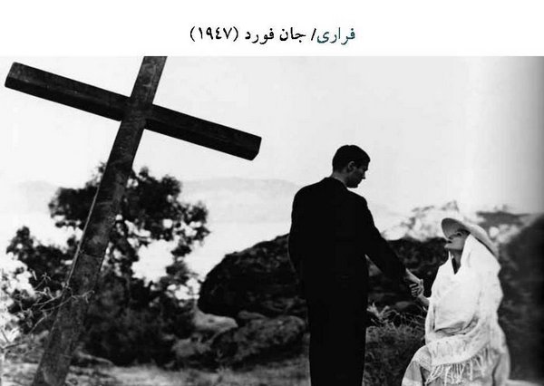 فیلم فراری ساختهی جان فورد. این فیلم در سال 1940 و به صورت صامت ساخته شدهاست. من نام فیلمها را به ترتیب سال تولیدشان نوشتهام. این کلار گیبل است که در سال 1940 محمولهی عجیب را بازی کرده است. در فیلم فراری ساختهی جان فورد، نقش یک کشیش فاسد را نشان میدهد. همانطور که در تصویر میبینید، شباهتهایی از حضرت عیسی (ع) را در شخص بازیگر میگذارد. نشانههایی که در اناجیل از حضرت عیسی (ع) تصویر شدهاست. بهعنوان مثال از نکات مشترک آنها، آدمی است که زن ندارد، سر او درد میکند و واقعا سردرد دارد، بعضی وقتها سرش را میگیرد، با این حرکت میخواستند نشان دهند که به او وحی میشده است، مادری دارد که به او خیلی علاقهمند است،