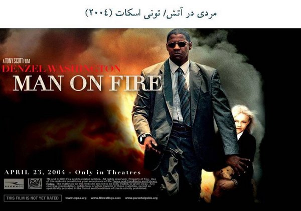فیلم "مردی در آتش" که در حدود 40 روز پیش از تلوزیون پخش شد. در این فیلم هم مردی است که بادیگارد است و استخدام میشود تا از بچهای حمایت کند. بچه دزدیده میشود و او میرود و انتقام میگیرد. در طول فیلم او، آن بچه را شیفتهی خودش کردهاست و خودش هم شیفتهی آن بچه شدهاست. این فیلم از بعضی از جهات شبیه E-T است. وقتی که برگبرنده دستش هست، خودش را تسلیم میکند تا کشته شود.