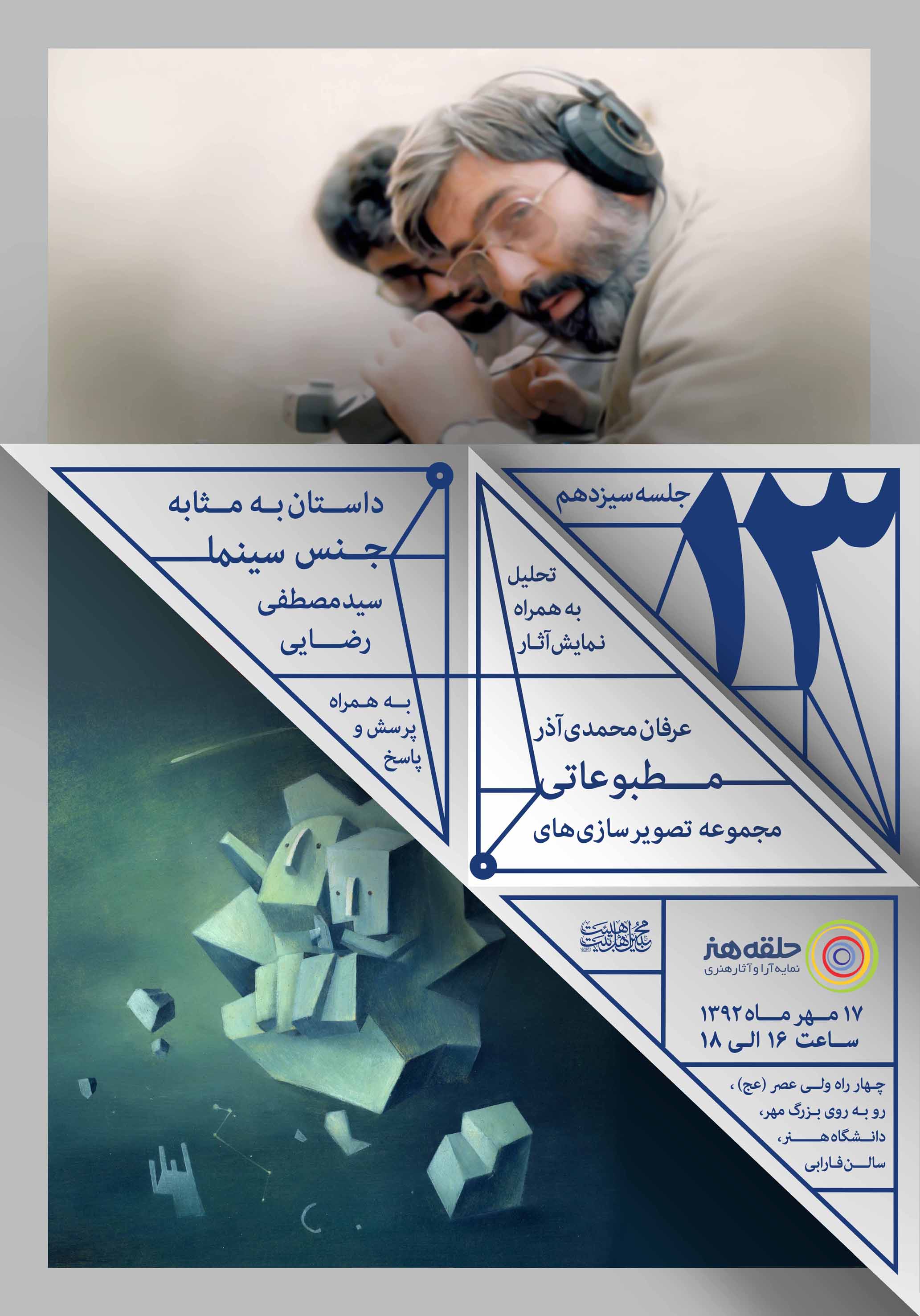 برنامه جلسه سیزدهم حلقه هنر چهارشنبه هفدهم مهرماه ۹۲ به شرح زیر خواهد بود: