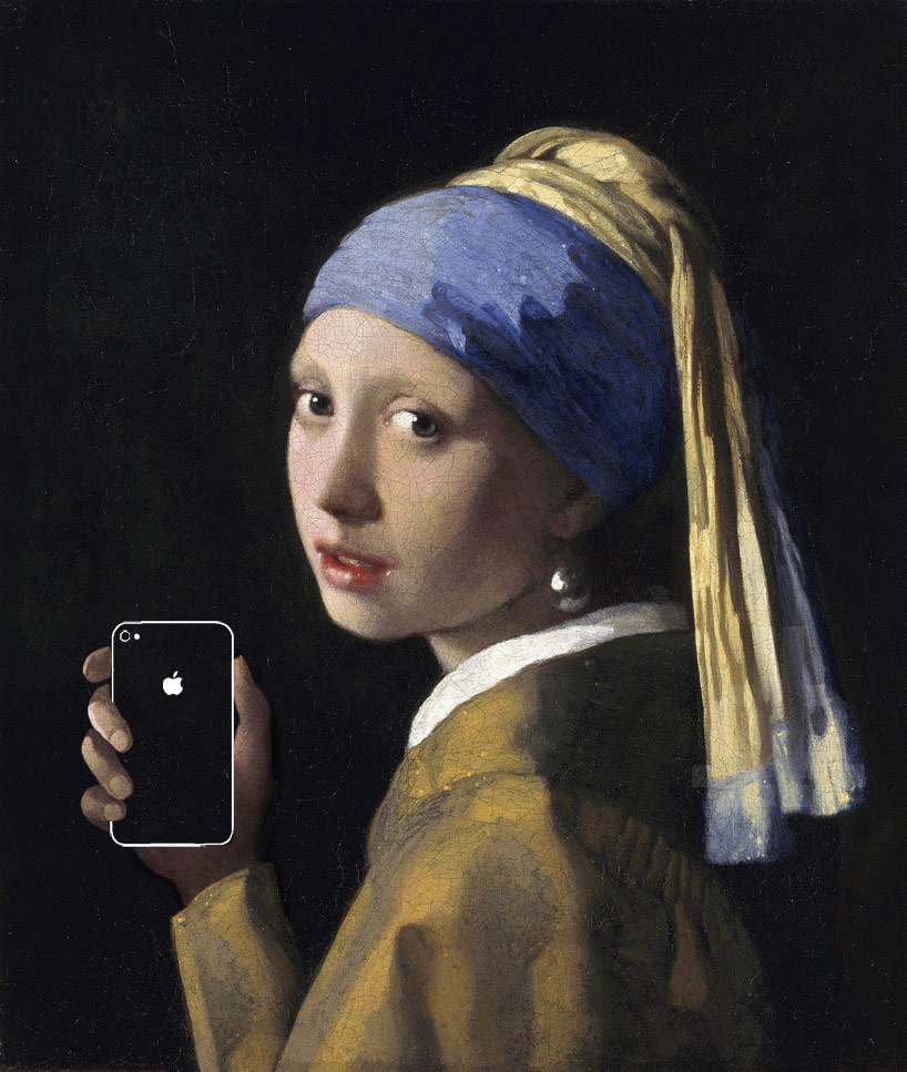 ‘girl with a pearl earring and an iPhone’ after ‘girl with a pearl earring’ by johannes vermeer, 1665