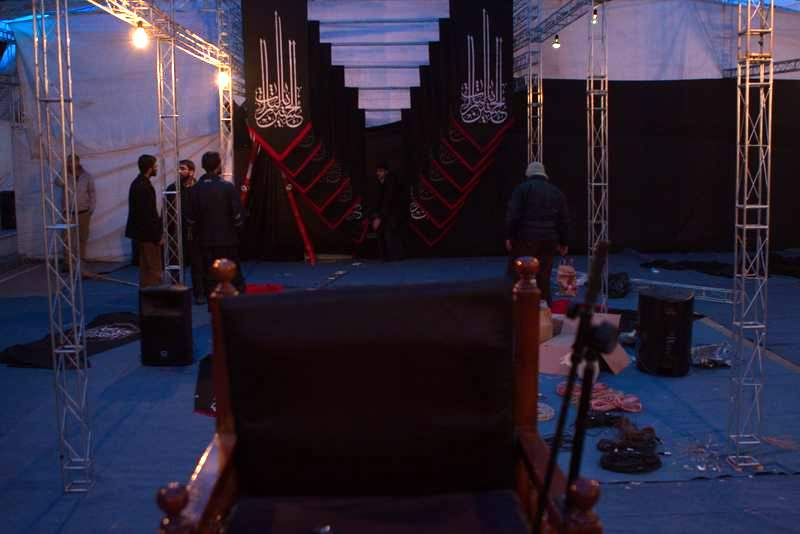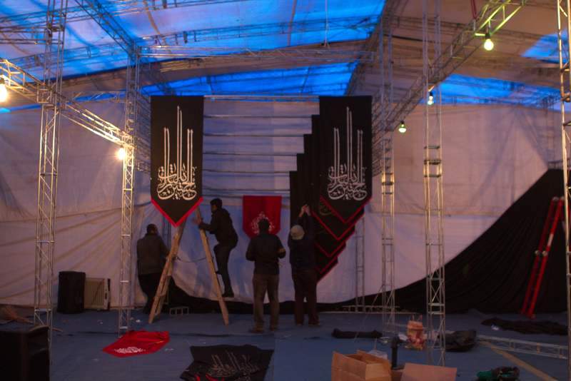 معمولا برنامهها و هیئتهای مذهبی و غیرمذهبی جایگاهی خاص دارند که محل ایستادن یا نشستن سخنران و برگزاری بخش اصلی و رسمی برنامه است. این جایگاه بنابر همین اهمیت موضوعیش غالبا باید طوری طراحی شود که دربردارندهی مفاهیم و نشانههای خاص آن برنامه باشد. رسمی که مدتهاست در طراحی جایگاههای مراسمهای مذهبی در ایران جا افتاده است استفاده از بنرهای گرافیکی مسطح به عنوان پس زمینه جایگاه سخنرانی -به عنوان سادهترین و سریعترین راهبرد طراحی- است. اما هیئت هنر خود را موظف به پیروی از این رسوم نمیدانست.