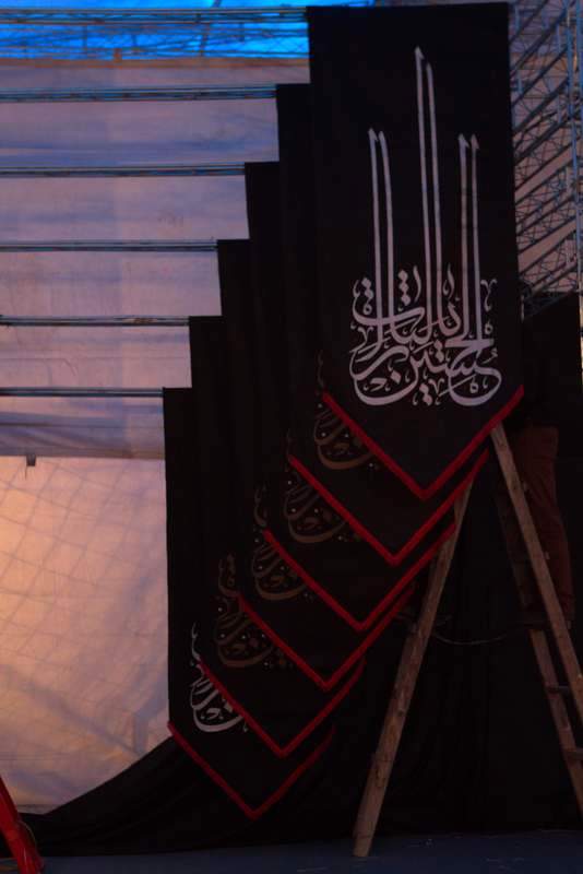 محرم سال ۹۱ و ۹۲ طرحی به عنوان جایگاه سخنرانی هیئت هنر اجرا شد که با وجود صرف کمترین زمان ممکن و هزینه ناچیز -به دلیل استفاده از پارچهها و متریالهای موجود در هیئت هنر- عمق دارد و به نوعی دربردارنده یک حریم فضایی معماریست. طرحی که به سادگی با آویز سیاهههایی که خود نیز طراحی هیئت هنر هستند، یک حریم مشخص فضایی را میسازد. در سال ۹۱ بعدتر با اضافه شدن پارچهی متبرک روی سنگ قبر امام حسین (ع) به پیشانی این طرح، زیبایی و ارزش آن چند برابر شد.