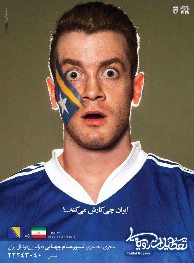 آتلیه طراحی گرافیک سهدرچهار به سفارش مجری انحصاری سفرهای فوتبالی جام جهانی برزیل در ایران یعنی آژانس مسافرتی تعطیلات رویایی, با شناخت خوب از روحیه و غیرت فوتبال دوستان ایرانی, بیلبوردهایی تبلیغاتی طراحی کرده است که به سبکی جدید باید از آن ها با نام گرافیک کری (به ضم کاف) نام برد. گرافیکی که می تواند بدیل داخلی پروپاگانداهای دوران جنگ سرد باشد.