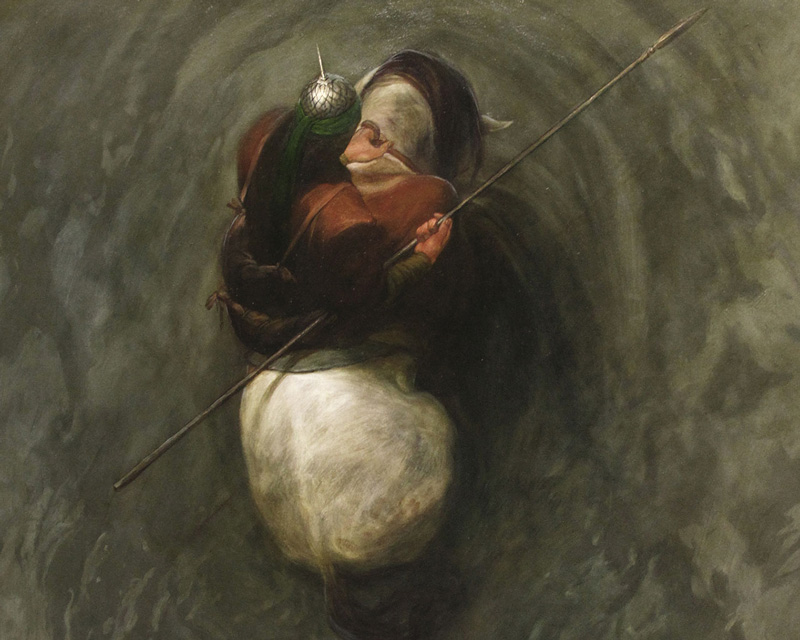 صدای شمشیرش میآمد، صدای تاخت اسب و زمزمه شعری که میخواند: "این مبارزه جوهره مردان را آشکار میکند، این مبارزه، ادعا را از حقیقت جدا میکند."