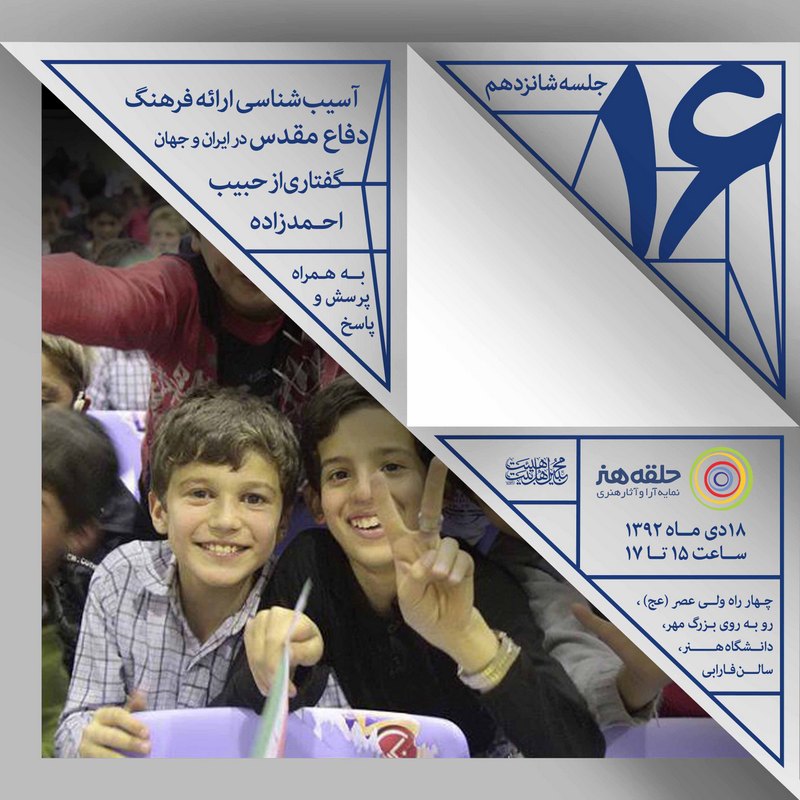 جلسه هشتم حلقه هنر با گفتاری چالشی از دوست خوبم، کارگردان جوان و خوشذوق کشورمان، محمدباقر مفیدیکیا با عنوان «جنگ؛ این واژه مظلوم» همراه بود. شاید همان چالشهای آن جلسه باشد که حالا در حلقه هنر موجبات شکلگیری یک دیالوگ را فراهم آورده است. جلسه بعد حلقه هنر یعنی شانزدهمین حلقه هنر اختصاص دارد به گفتاری نظری از حبیب احمدزاده در موضوع یک آسیبشناسی در وادی فرهنگ و هنر....