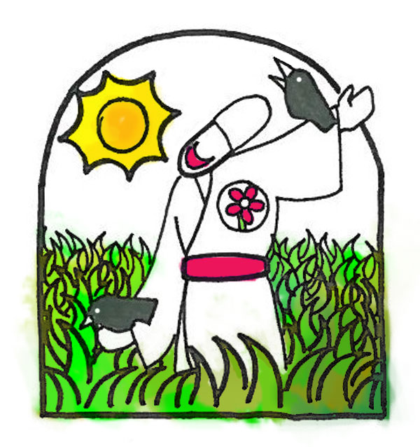 کلاغها به مترسک حمله میکردند؛ و آن قدر به او نوک زدند تا حفرهﺍی در وسط بدنش پیدا شد. مترسک هم دیگر از اخم کردن خسته شده بود. وقتی مترسک به کلاغها لبخند زد، آنها گلی را در حفرهﻯ قلبش کاشتند.